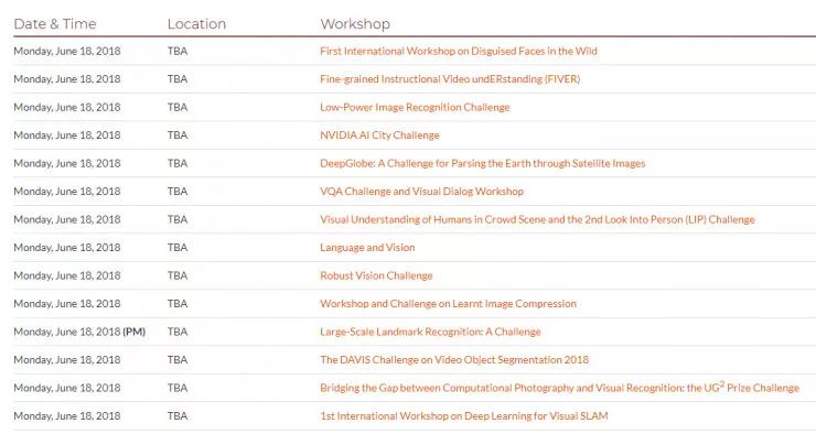 当然了,上面介绍的那些比赛并不是全部,大家可以点击:http://cvpr2018.thecvf.com/program/workshops ,查看更多 workshop 比赛信息,看看是否有你感兴趣的主题。