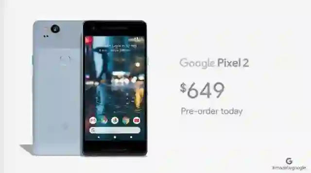 Pixel 2 有白、黑和蓝色 3 种颜色可选,最便宜的 64GB 版本要价 649 美元,而 128 GB 版本为 749 美元,Pixel 2 XL 仅有黑和白两色,起售价 849 美元,两款手机将于 10 月 17 日开始发货。