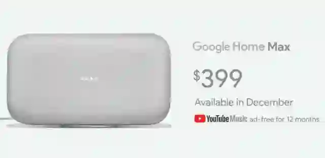 Google Home Max 支持蓝牙与 Google Cast,将与 12 月发售,要价 399 美元。