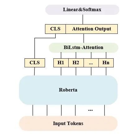 我们尝试在原始 Roberta 模型后添加 BiLstm-Attention,然 后将其输出结果与原 CLS 拼接后输入一个线性层进行 softmax 分类,在 usual 数据集中效果较好,在 virus 上效果欠佳。