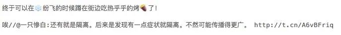 | 愤怒 | 每个月都有特别气愤的时候。,多少个瞬间想甩手不干了,杂七杂八,当我是什么。 | 整天歌颂医护人员伟大的自我牺牲精神,人家原本不用牺牲好吧!吃野味和隐瞒疫情的估计是同一波人,真的要死自己去死,别拉上无辜的人。 |