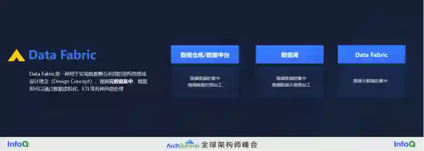 我看到了一个比较可行的思路就是 Data Fabric,它的目的是实现数据的整合利用,它是一个架构思想或者设计理念,并不绑定一个特定的技术实现。Data Fabric 强调元数据要集中管理,但是从数据本身可以兼容各种风格数据的处理手段,我们可以用 ETL 的方式来做 Data Fabric,也可以用虚拟化的方式来做。当然我个人认为如果用 ETL 和数据仓库的方式来做 Data Fabric,那么 Data Fabric 的优势就发挥得就没有那么明显。