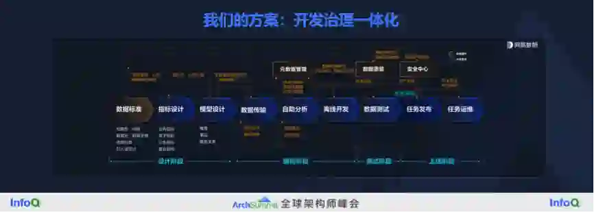 我们在这个方向也做了一点贡献,思路和大家不太一样。我们强调的是开发和治理一体化,让指标、模型等等持续保持高质量。大致的产品设计逻辑,是我们在建数仓、建指标这些开发活动的过程中,同步把数据治理的活动也做掉了。这是因为我们发现有很多客户,先找开发的厂商来做开发,做完之后发现数据质量不太行,又去找数据治理的厂商来做数据治理的项目。我们认为可以把开发和治理做到一体化,在开发环节同时把开发治理做好了,就不会有后遗症了。