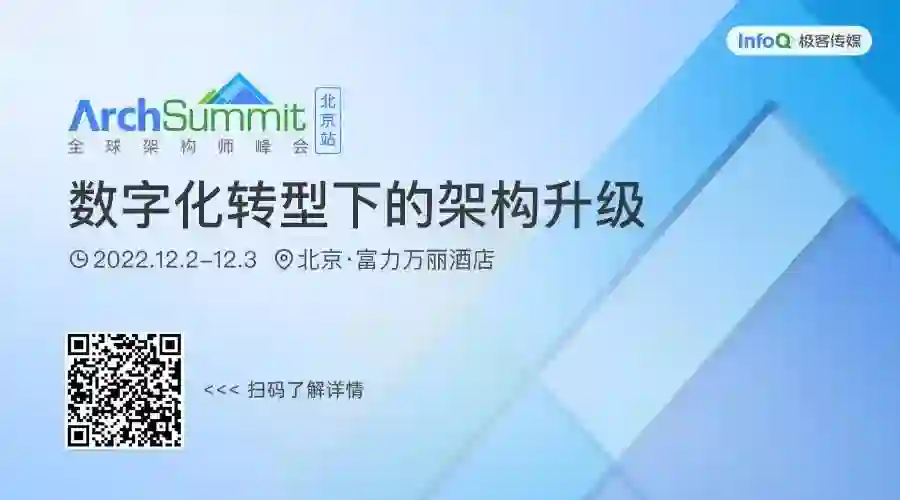 在 12 月 2-3 日,ArchSummit 架构师峰会,将在北京举办,这次会议重点讲述架构演进,以及在架构层面的落地细节,同时也会分享在当前形势下,国内可替代的软件方案。更多细节可以查看会议官网 https://archsummit.infoq.cn/202212/beijing/track。
