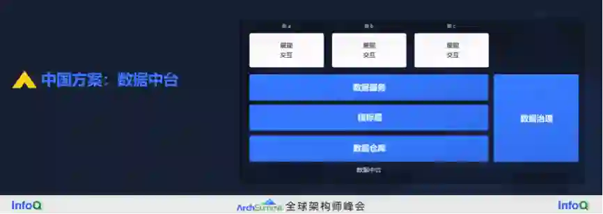 怎么样解决这个问题呢?有很多的方案,我把它们分为中国方案、国际方案和我们的方案。中国方案就是数据中台,要做到 OneData、OneService、OneID,解决指标口径不一致的问题,所有的口径定义、计算逻辑都应该在中台里面做好。