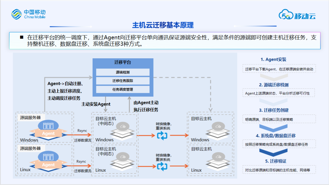 主机:物理机到移动云主机,虚拟化主机到移动云主机;