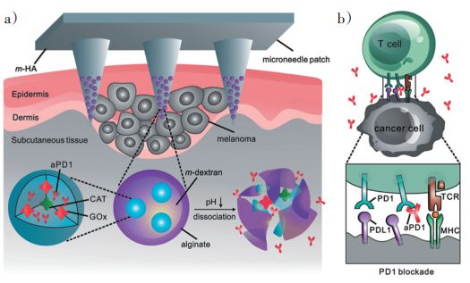 图 3 递送免疫检查点抑制剂的微针透皮贴片