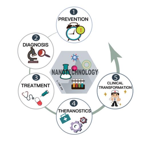 随着纳米科学的迅速发展,纳米技术已经被运用于生物医药领域,为克服癌症治疗的瓶颈提供了新的解决方法。利用纳米技术设计功能性生物材料用于递送药物,能够显著增加药物的溶解度和生物利用度,增加药物的肿瘤靶向性,同时还能提高药物的稳定性,从而降低化疗产生的毒副作用。此外,利用纳米技术构建的磁性纳米粒、量子点、金属纳米粒等还能潜在用于癌症诊断,显著增强诊断的灵敏度,为癌症的早期发现和及时治疗提供可能。经过多年的发展,纳米医药技术在基础研究和临床应用上都取得显著的发展。本文概述近年来纳米技术在癌症预防、诊断和治疗中的研究进展,并探讨其在未来的临床应用前景及挑战(图1)。