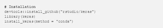 首先,我们需要建立我们的深度学习环境。这可以通过 Keras 包和 install_keras 函数完成。