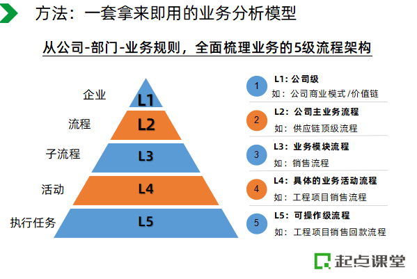 这部分内容,老师将会教大家一套名企都在用的业务分析模型:从“公司--部门--业务规则”自上而下全面梳理业务。