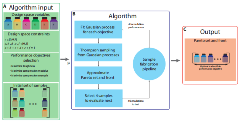 图|概述用于寻找最佳 3D 打印材料配方的优化算法(来源:Science Advances)