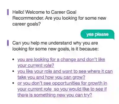 采用交互式推荐系统的职业推荐代表着一个吸引用户的独特机会。IBM 研究院在 ACM IUI 会议的一篇论文《我的职业生涯通向何处?利用对话来实现交互式的职业目标推荐》(「Where Can My Career Take Me? Harnessing Dialogue for Interactive Career Goal Recommendations」,论文下载地址:https://dl.acm.org/citation.cfm?id=3302311)中,提出了一个交互式的职业目标推荐框架,该框架利用对话的功能,让用户以交互式的方式引导推荐系统改进职业推荐,并将用户的个人偏好带入到系统中。