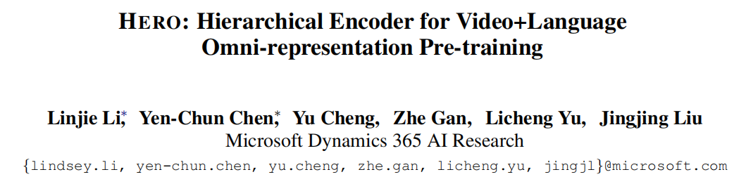HERO: Hierarchical Encoder for Video+Language Omni-representation Pre-training