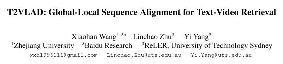 T2VLAD: Global-Local Sequence Alignment for Text-Video Retrieval