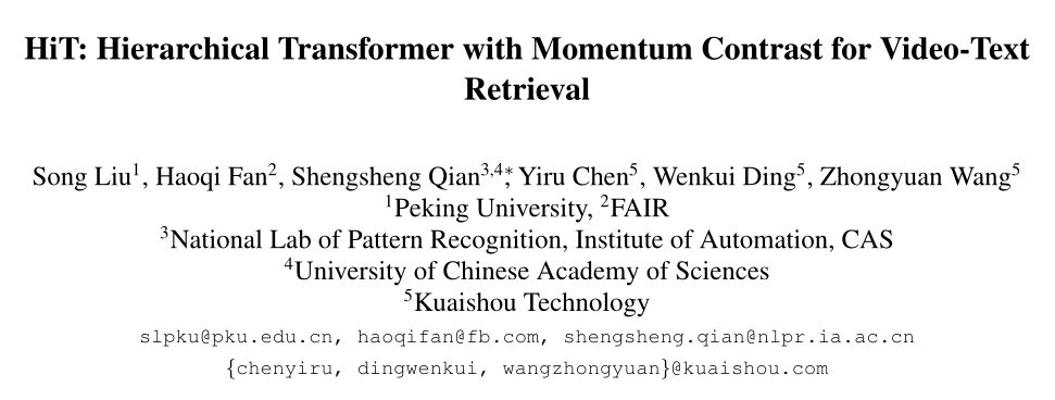 HiT: Hierarchical Transformer with Momentum Contrast for Video-Text Retrieval