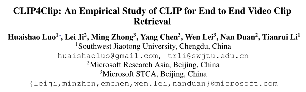 随着 CLIP 的爆火,作者在本文中希望将 CLIP 中图片文本预训练获得的知识转移到视频文本检索任务中,因此作者提出了 CLIP4Clip 模型,并设计了三种相似度计算方式进行相似度的计算。