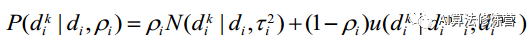 地图构建主要是深度估计。如图所示,它采用概率模型, 高斯分布加上一个设定在最小与最大 深 度 之 间 的 均 匀 分 布 :