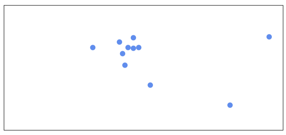 首先我们计算所有点的平均值。每个点在最初都被赋予了同样的重要性。