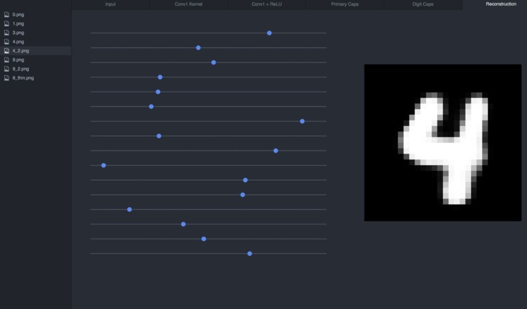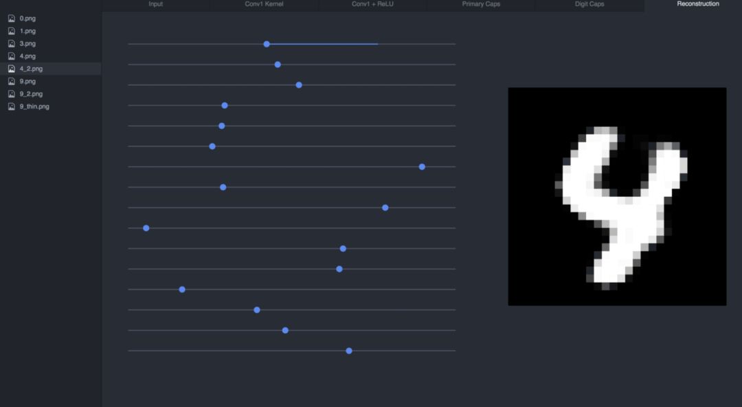 为了让后面的讨论更加容易,我开发了一款与胶囊网络实现配套的可视化工具,它能够让您看到网络的每一层是如何工作的。这些内容都可以在 GitHub 上找到(https://github.com/bourdakos1/CapsNet-Visualization)。