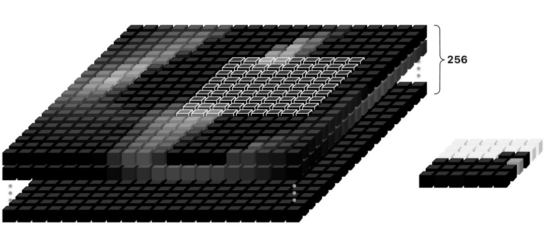 用所有的卷积核处理完图片后,我们可以得到一个含有 256 张输出图片的栈。