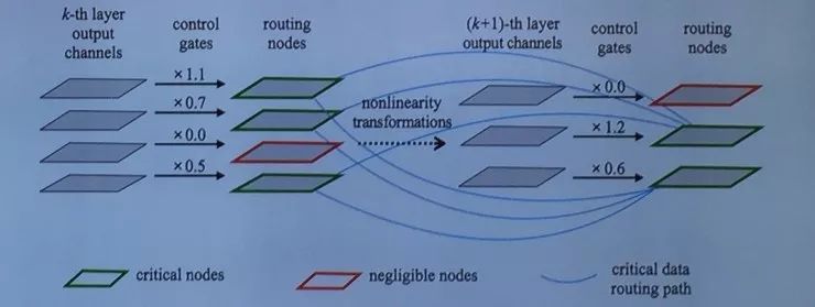 可以看出在准确率不变的情况下,网络的稀疏性大大降低。(注:这里所谓稀疏性是指选择的 critical routing nodes / total nodes)。也即只有百分之十几的神经元在预测中真正起到作用。
