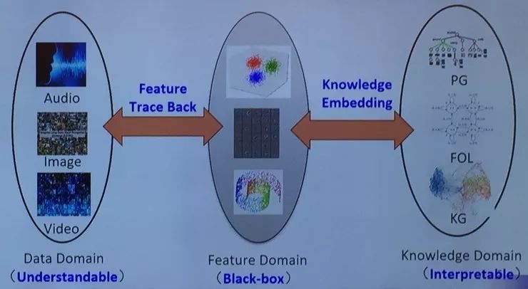 当前的大多数机器学习,特别是以统计为基础的统计学习都是将数据映射到特征空间中来进行学习,但是这里的问题是人并不理解机器的特征学习,人所能理解的一方面是原始的数据空间(与我们的感觉相关),一方面是更高层次的知识空间(与我们的知觉相关)。