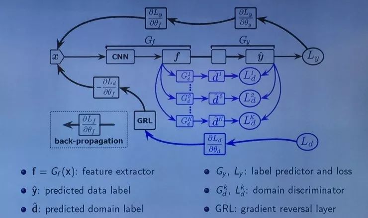 随后是由清华大学龙明盛介绍了在迁移学习过程中遇到 source domain 的 label space 大于 target domain 的情况下,如何通过选择部分 label space 进行迁移学习,也即部分迁移学习。