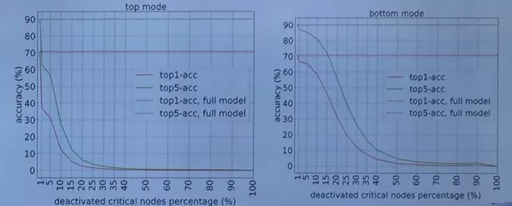 苏航将这些对预测起关键作用的神经元称为 critical nodes,而这些 critical nodes 的数据流传递路径则称为 critical data routing paths。如果将这些 critical nodes 设置为 0,整个网络的预测将显而易见地迅速恶化。