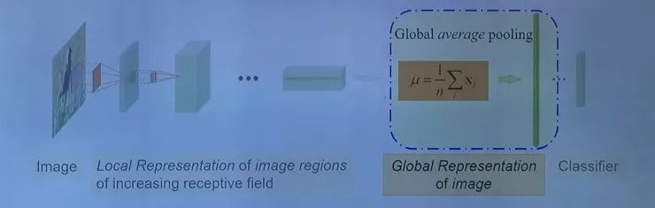 深层卷积神经网络在大规模物体分类以及计算机视觉的其他领域中获得了很大的成功,这个网络事实上可以看成是学习和表示的过程,即经过层次化的卷积及 pooling 来学习 local feature,最后会经过一个全局平均池化(Global average pooling)得到一个图像层面的表示,然后送给分类器进行分类。