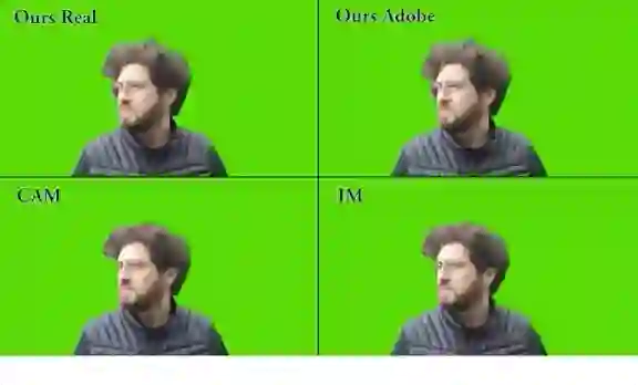 用深度抠图网络 G 的单独副本 GReal 组成对抗网络,对抗网络会生成类似于 GAdobe 输出的遮罩,而鉴别器网络 D 会判别结果的真假。