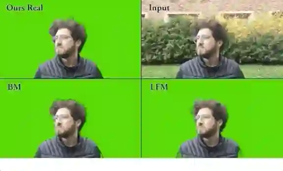 输入是带人像的照片 I 和照片中的背景 B’,以及人像软分割 S 和 运动先验 M(仅对视频而言)。