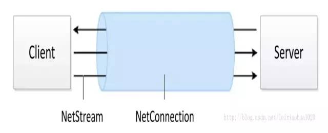 其中,网络连接代表服务器端应用程序和客户端之间基础的连通关系。网络流代表了发送多媒体数据的通道。服务器和客户端之间只能建立一个网络连接,但是基于该连接可以创建很多网络流。他们的关系如图所示: