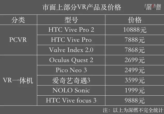 其余市面上热度较高的机型,还有爱奇艺奇遇3、Nolo Sonic、以及HTC Vive Focus 3等产品。