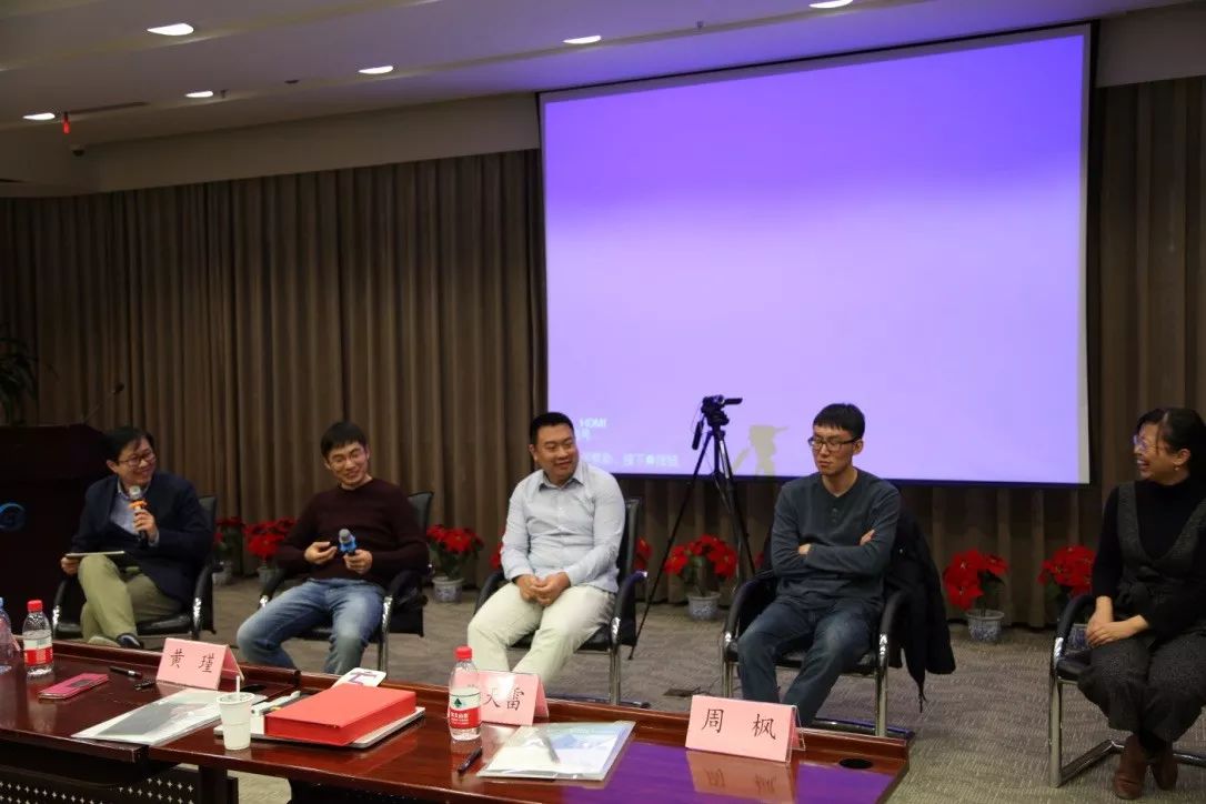 报告结束后的panel环节是周枫主持,四位讲者一起参与。第一个问题是,机器和人的关系问题,即机器是不是会代替人。大家的观点基本相近,张天雷就说现在很多工作岗位上,不是说换不换人的问题,而是找不到人来干的问题。因为人口红利结束,目前的问题是一个是人手不够,另外一个是具体的人不愿意干某类事。