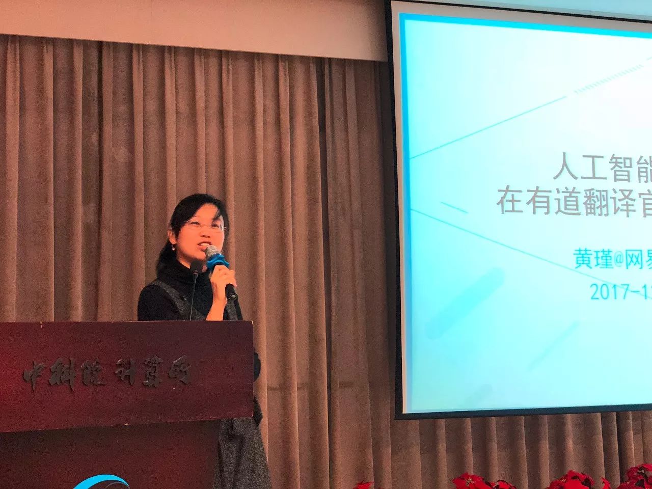 接着是网易有道黄瑾的报告,对于自己公司深耕的领域,会议主席周枫介绍说:翻译其实是一个非常古老的领域,1950年左右就已经开始有机器翻译系统,但是一直效果非常不好。这两年有很大的变化,有道翻译翻了十九大的报告,比我翻的好多了。目前的实际情况是,机器翻译在中文到英文的领域可以超越普通人,因为中国人大家去遣词造句写英文,往往还是写的不一定有机器见的那么多,反过来,主要语言英文到中文的翻译也是可以做相当不错的。