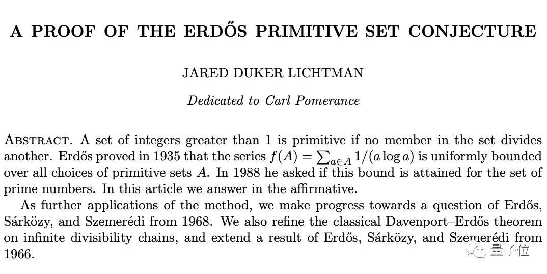 谁能想到,2018年,他和他在达特茅斯学院的导师Carl Pomerance还真先一起侧面证明了原始集的“Erdős和”不会大于1.78左右的猜想。