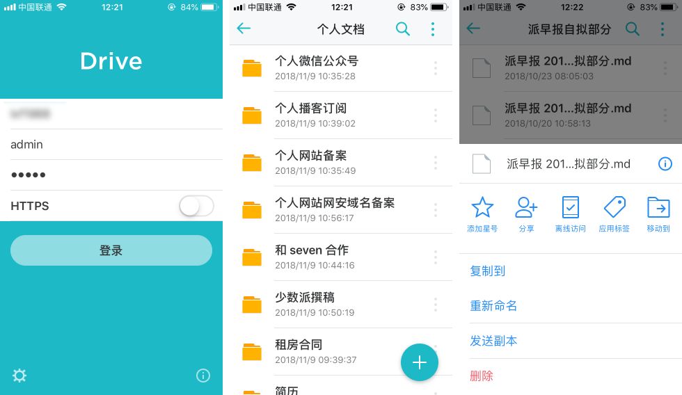 当然现在都是移动互联网时代,群晖 Drive 也提供了移动端应用,使用你的 QuickConnect ID 和用户名密码登录之后你就可以看到你存在群晖 Drive 的文件了!