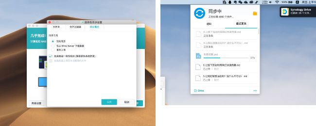 但我觉得最实用的功能还是 PC 和群晖 Drive 之前的备份功能,通过电脑客户端,选择需要同步和备份的文件夹,之后选择同步策略(双向同步、仅上传还是仅下载),之后等待完成即可。而在我的使用场景中,即便电脑不在家中,我也可以通过群晖 Drive 进行远程的同步,使用体验和其他公有云云盘服务并无太大差别。