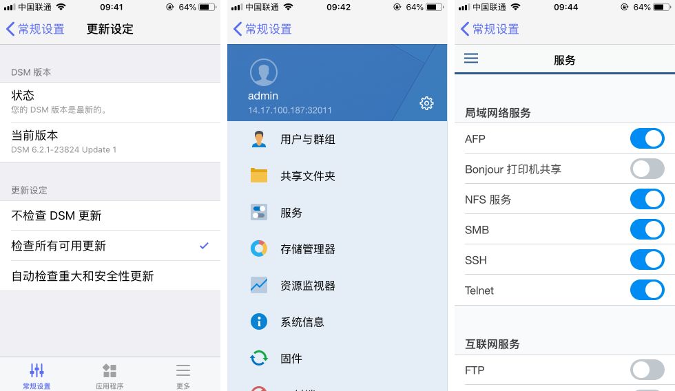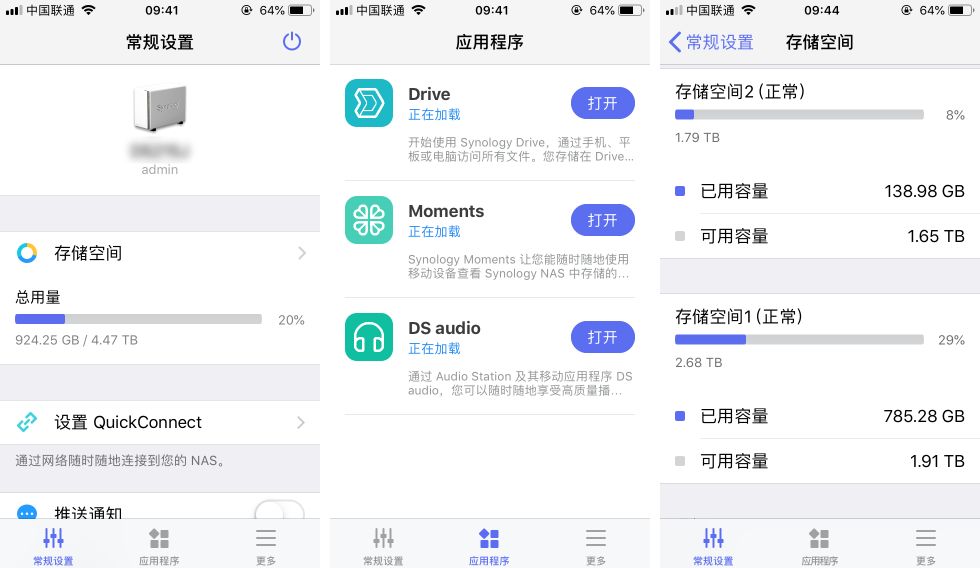 此外你可以在手机端对 DSM 进行系统更新,设置远程外网登录的 QuickConnect 等等,此外你可以直接在管家中一键安装精选的应用,例如群晖 Drive、用于手机端图片备份的 Moments 以及 DS audio 套件等等,安装完成后可以直接开启使用了!当然管家内还集成了 DSM Mobile 控制面板,你可以在手机端开启相关的系统功能,更新软件套件等等,即便暂时没有电脑也可以在手机端轻松的管理群晖。