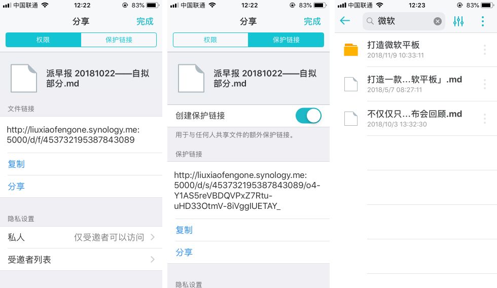 非常方便的地方在于手机端可以将文件一键生成外链,可以设置密码等进行安全分享(用过百度云相信大家都很熟悉),而且微信端收到的文件也可以一键转存到 Drive 上。这样后续在 PC 上打开编辑就很方便。需要用到的文件可以一键锁定临时保存到手机中进行离线访问,用完之后释放掉不占用手机空间。