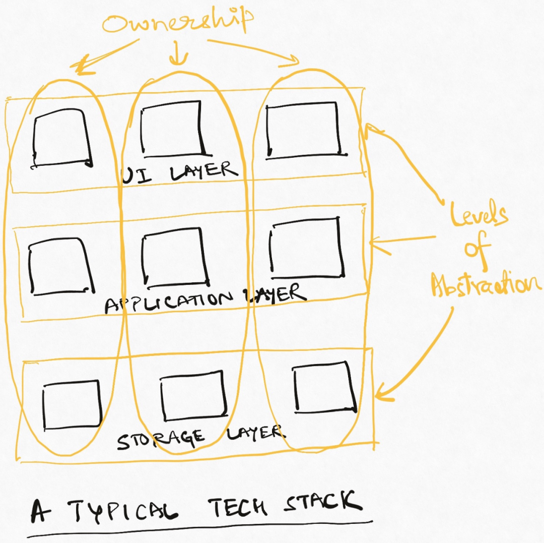 当我们看技术栈时,所有权范围应该如何运行?它们应该沿着具有类似抽象级别的组件水平运行,还是应该垂直运行,将系统分组以生成端到端的业务价值?