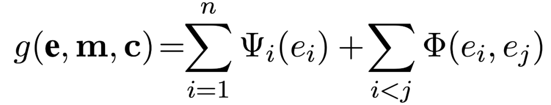 但是,这是一个 NP-hard 的问题,作者针对打分函数与 CRF 形式上的相近性进行建模,将这个问题看作一个fully-connected pairwise CRF model , 利用 belief propagation 进行优化求解: