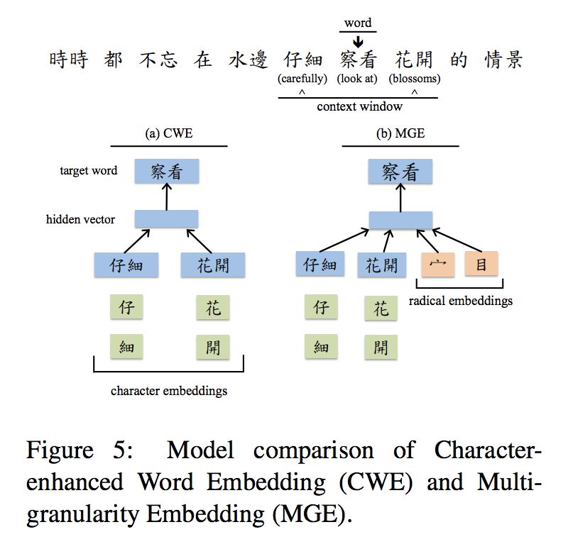 本文是台湾大学发表于 EMNLP 2017 的工作,论文提出了一种基于中文字符图像的 embedding 方法,将中文字符的图像输入卷积神经网络,转换成为词向量。因为中文是象形文字,这样的词向量能够包含更多的语义信息。