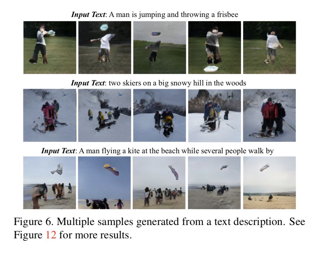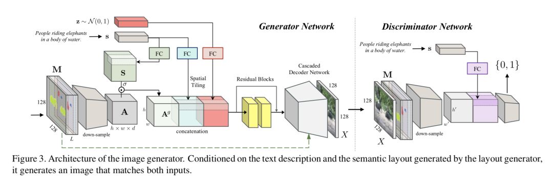 本文是密歇根大学和 Google Brain 发表于 CVPR 2018 的工作,论文首先从文字用一个 box generator 预测出物体类别所在的 bounding box 的位置,然后用 shape generator 在 box 的基础上生成更细腻的 mask,最后把 mask 和文字信息输送到 image generator 进行图片的生成。