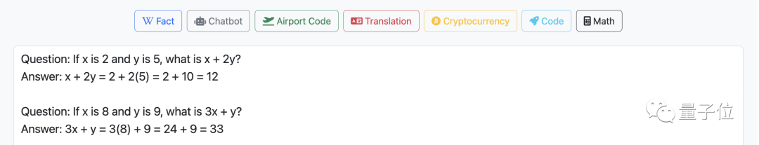目前可以实现的功能有:询问事实,直接聊天,航班代码,多语言翻译,加密货币,代码,计算数学……