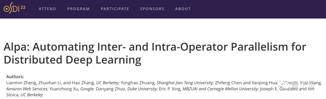 值得一提的是,有关这篇系统的论文《Alpa: Automating Inter- and Intra-Operator Parallelism for Distributed Deep Learning》已经被收录进计算机系统领域顶会OSDI 2022。