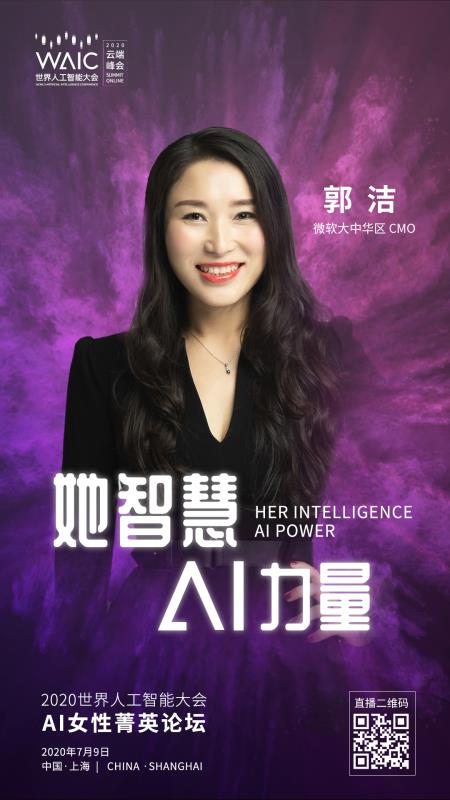 同样,女性在人工智能领域中所扮演的角色也愈发重要。尤其是在人工智能在各领域都在逐步接近人类水平的现在,更是需要将女性的特质及思考方式融入在 AI 之中。2020 年 7 月 9 日,微软大中华区 CMO 郭洁将带来主题为“她智慧·AI 力量”的【AI 女性菁英论坛】,邀请全球在人工智能领域的女性从业者,共同讨论人工智能发展中的女性担当与前瞻探索。