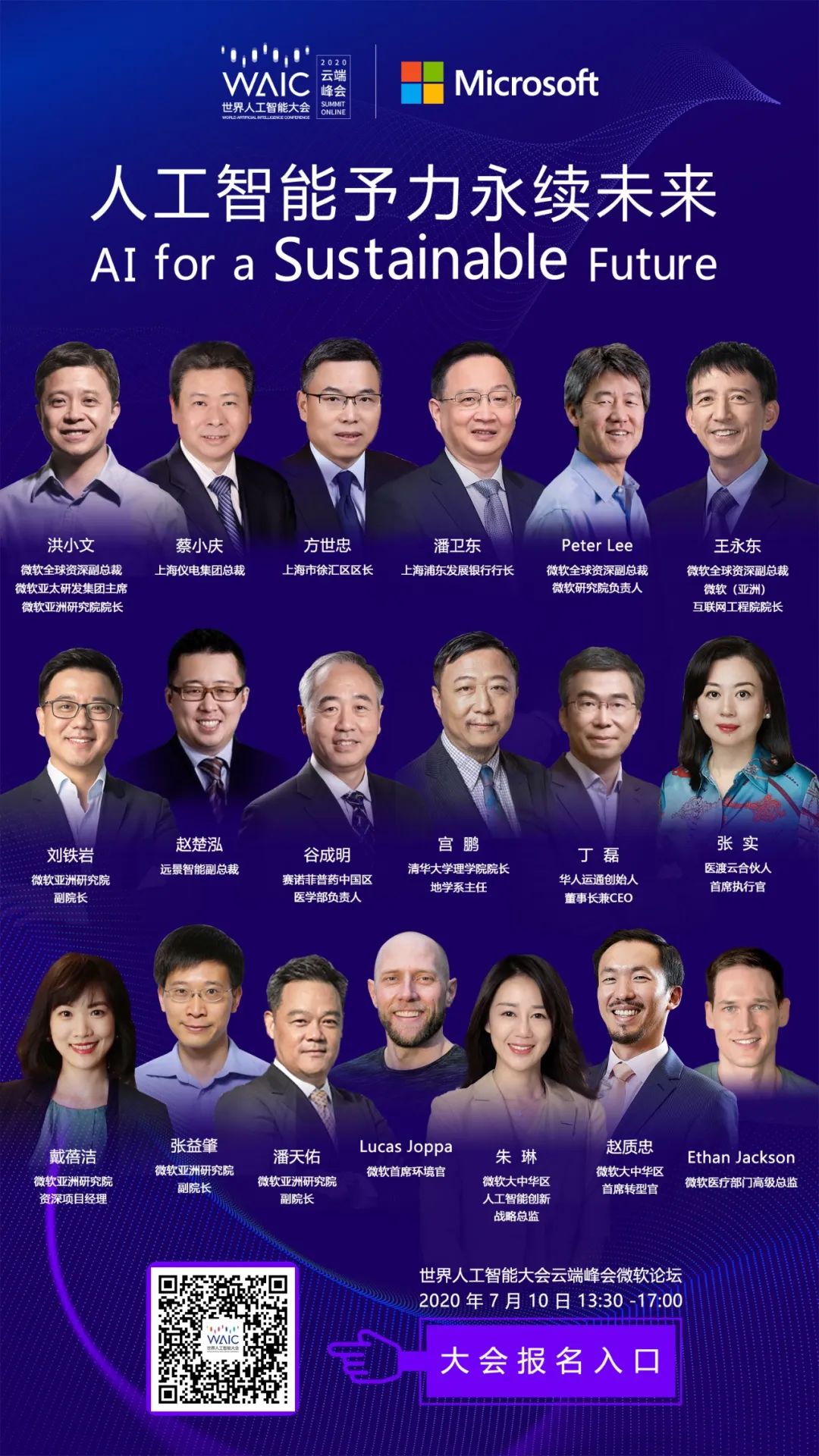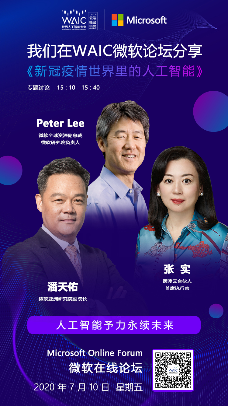 7 月 10 日 13:30-17:00,WAIC 世界人工智能大会--【人工智能予力永续未来】微软主题论坛,期待各位的参与。
