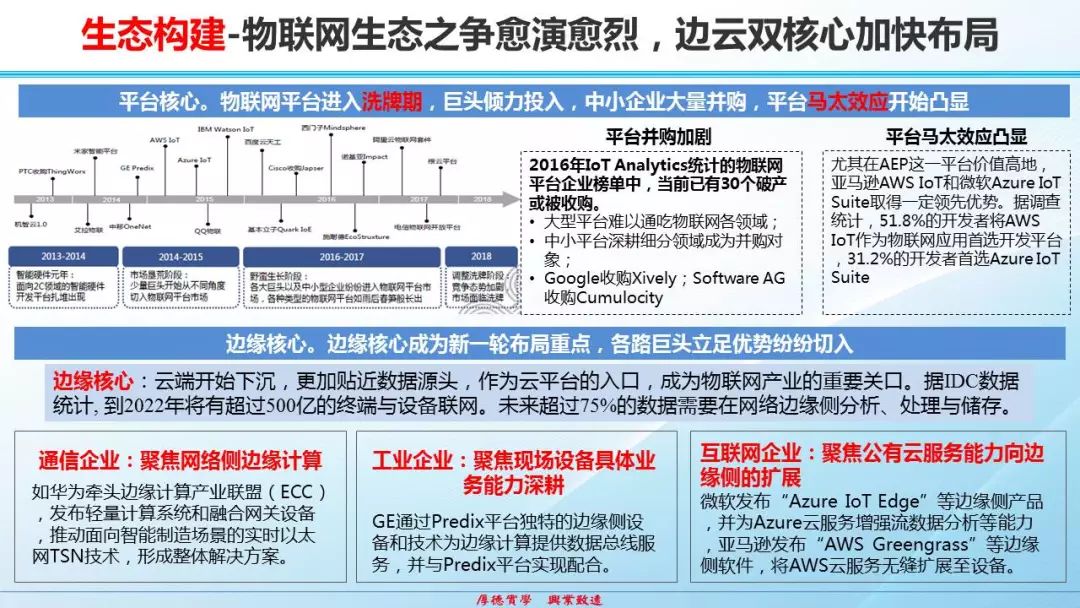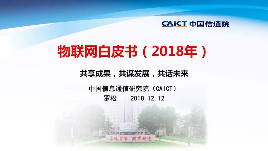 2018年12月12日,中国信通院发布了《物联网白皮书(2018年)》。本白皮书把握全球物联网最新发展态势,研判物联网传感器、芯片模组、网络、平台关键环节的技术产业进展情况,梳理消费物联网、智慧城市物联网、生产性物联网三类物联网应用现状及驱动因素,在对我国物联网现阶段情况归纳总结的基础上,提出我国物联网“建平台”与“用平台”双轮驱动、“补短板”和“建生态”相互促进、“促应用”和“定标准”共同推进、“保安全”与“促发展”相互促进的发展策略建议。