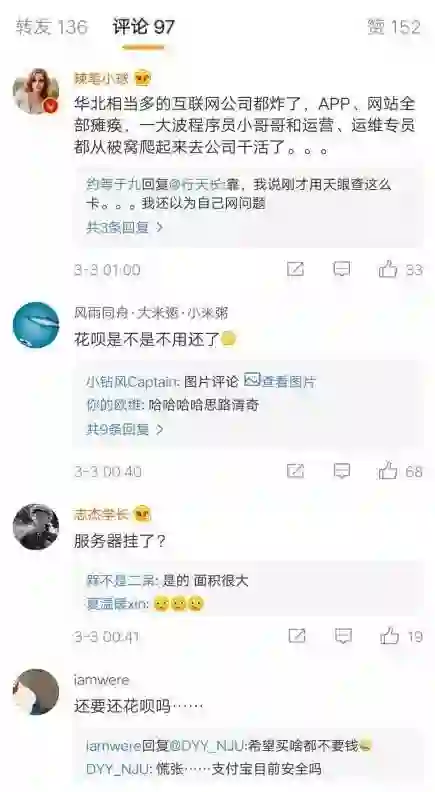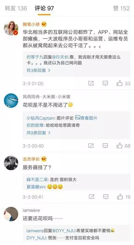 此次宕机引发众多网友吐槽,不过网友的反应很现实,他们心中关心的只有“花呗”: